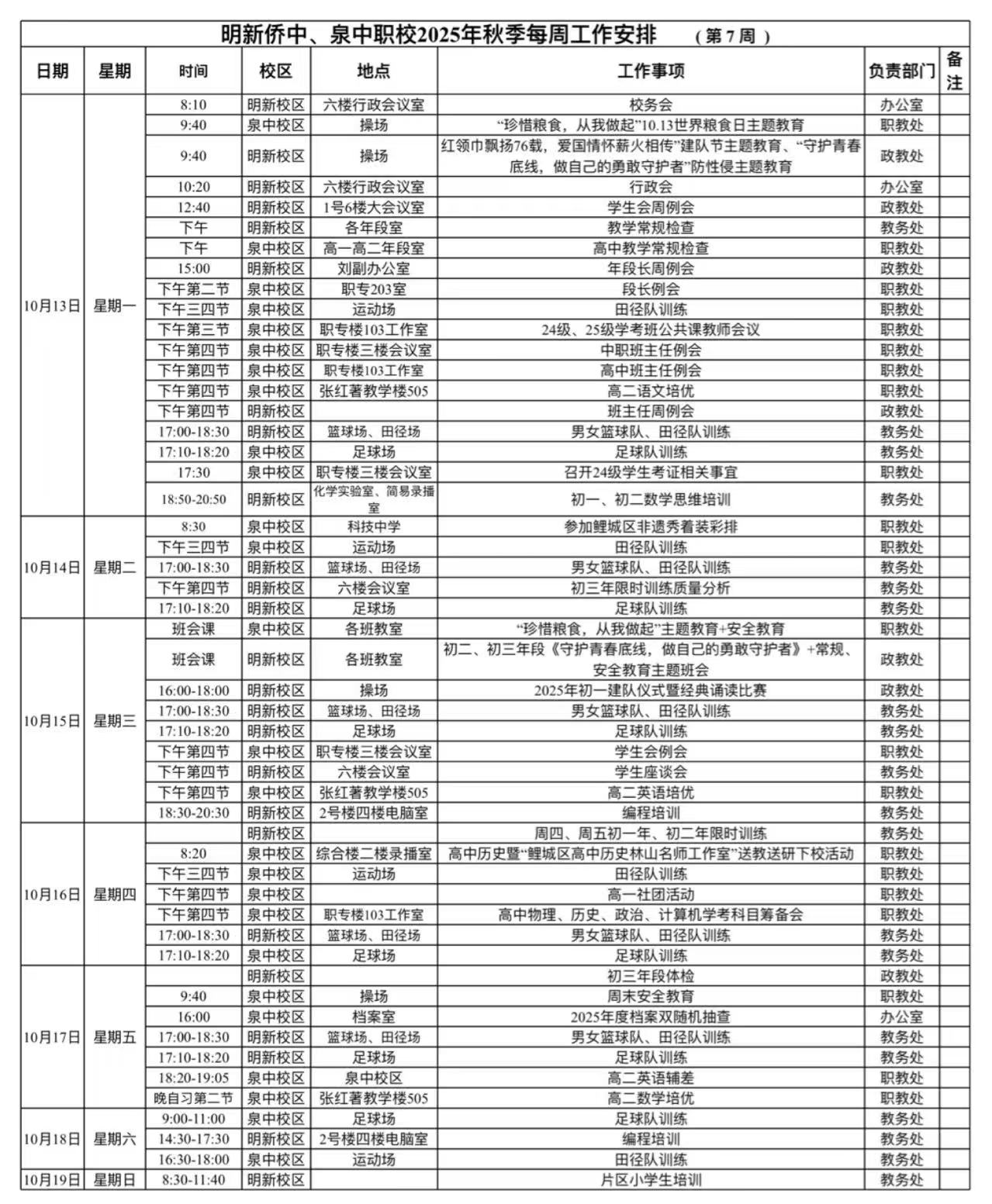 【泉中“食”刻】2025年秋季泉中职业中专学校食堂第07周食谱(…